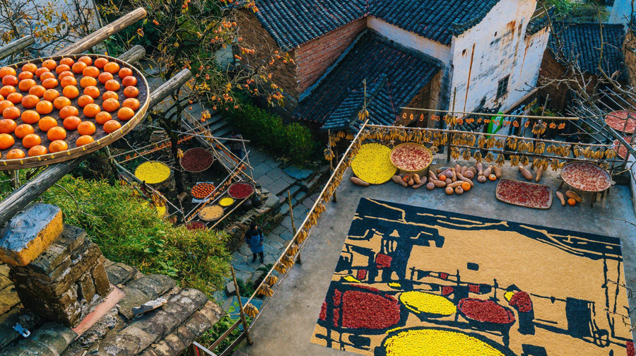 篁岭是婺源东线上一个典型的山居村落,当地村民自古就有用竹晒匾晾晒农作物的习俗。每到丰收时节,阳光下数百栋错落的徽派民居,和晒架上五彩缤纷的丰收成果构成绚烂的“晒秋”景观,吸引了不少摄影师来此取景创作。